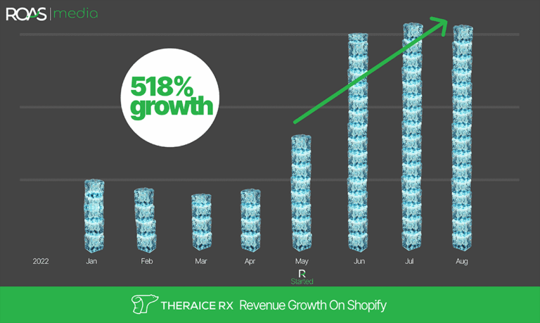 In months one and two, we achieved a breakeven roas on Meta while testing and developing the foundations for a scalable structure. Shopify revenue doubled in month 1 and nearly doubled again in month two as we helped TheraICE to break through the six-figure monthly revenue mark for the first time!